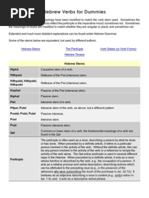 Hebrew 4 Dummies Verb Grammatical Tense